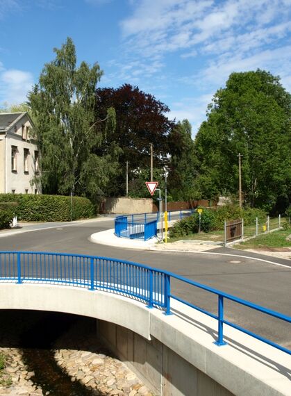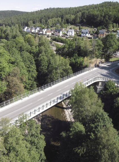 Das ebenfalls vom Ingenieurbüro Schulze+Rank geplante und während der Bauzeit begleitete Bauwerk ist eine 2-Feld-Schrägseilbrücke mit einer Gesamtlänge von 90 m ...
